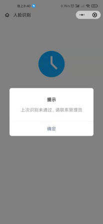 人脸识别失败后再次扫描学生空间人脸识别二维码微信界面会提示“上次识别未通过,请联系管理员”。