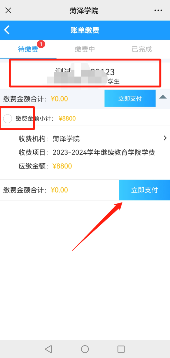第四步:缴费