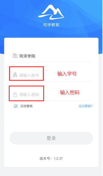 进入APP登录页面,依次选择学校,输入学号及密码(密码为Hzxy+身份证后六位)后点击“登录”进入APP;