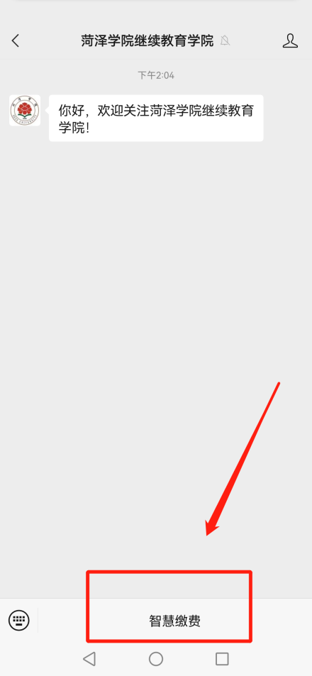 2.注公众号,点击智慧缴费,进行缴费