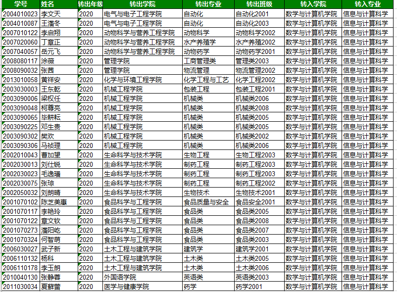 2021年新葡的京集团3512vip申请转信息与计算科学专业拟录取名单公示