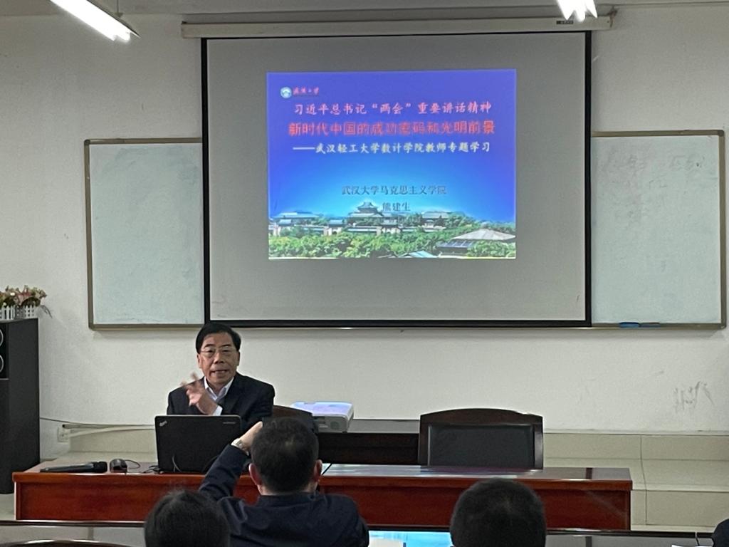 为深入贯彻落实习近平总书记“两会”重要讲话精神,3月31日下午,武汉大学马克思主义学院熊建生教授,以《新时代中国的成功密码和光明前景——习总书记2022两会重要讲话精神解读》为题,来新葡的京官网作理论宣讲报告。学院全体班子成员和教职工参加会议。副书记谢慧荣主持会议。