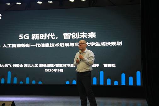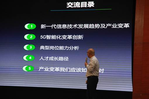 甘雯松以《5G 新时代,智创未来—— 人工智能等新一代信息技术进展与当代大学生成长规划》为题,从新一代信息技术发展趋势及产业变革、5G智能化变革创新、典型岗位能力分析、人才成长路径、产业变革大学生应该如何应对等五个方面,详细介绍了以人工智能为代表的新一代信息技术发展历史、特点、岗位需求,以及对大学生的新要求,他深情寄语新同学们:一要相信科技进步推动社会变革的力量,A.I.时代已经来临,积极拥抱才能主动引领;二要学习A.I.,走向未来,在新葡的京集团3512vip起步,将与世界同步;三要想象力、好奇心、实践化,决定了A.I.知识的学习成效和A.I.解决问题的成效;四要勇于创新、敢于挑战,积极参与科研实践,以实际环境锻造能力;五要学以致用,以专业技能和综合素养,提升就业竞争力。