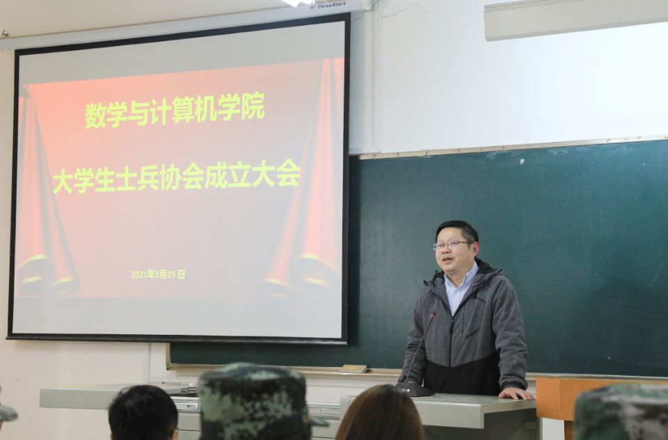 为了进一步发挥退役大学生士兵的引领示范作用,为学风建设注入红色基因,当天下午,数计学院在东七204教室举办了退役大学生协会成立大会。院党委书记孟三爱、副书记谢慧荣、校武装部刘乐、分团委书记张俊、2020级辅导员张新娅老师、院团委学生会主要负责人,以及20名退役大学生士兵,参加了本次活动。大会由退役大学生士兵李俊杰同学主持。