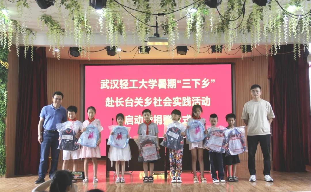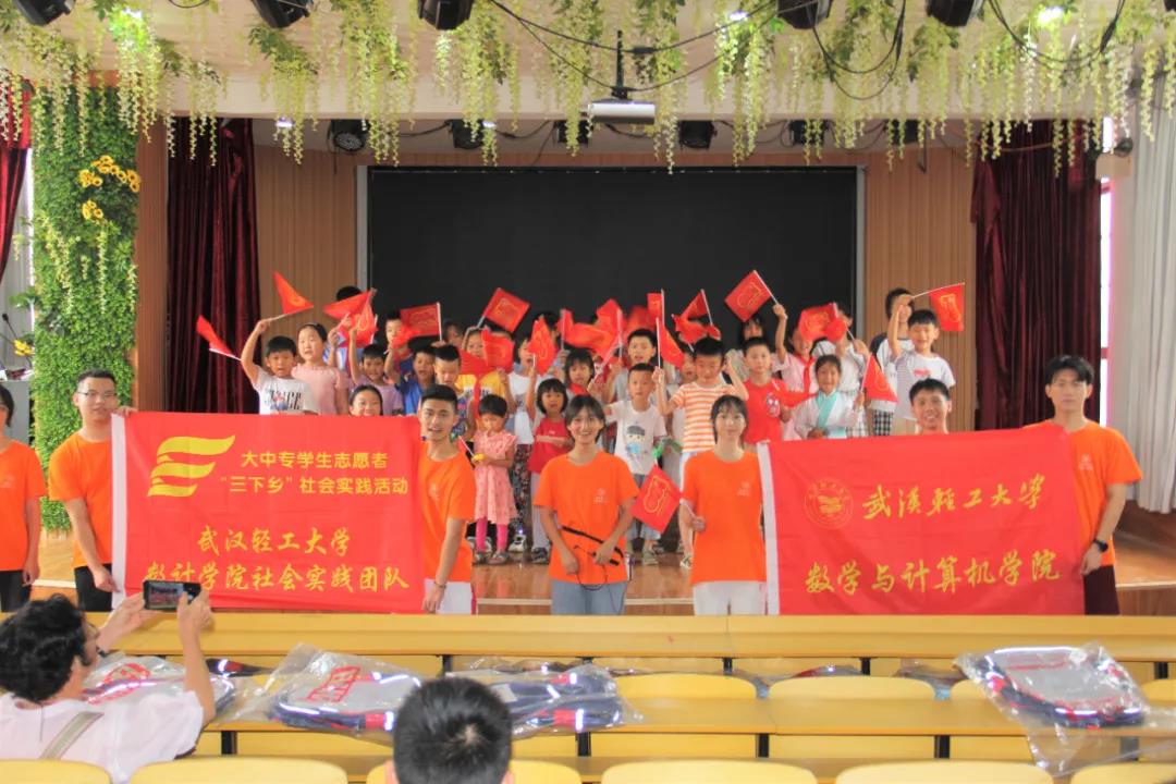 7月11日上午,在信阳市长台关乡的格林斯学校,新葡的京集团3512vip“三下乡”团队,正在为留守儿童献爱心。在该校老师的带领下,来自一年级到五年级,年龄不等的23名留守儿童,依次排队上台领取爱心书包,书包里还配有文具盒、铅笔,以及橡皮擦等学习用品。新葡的京集团3512vip数计学院党委副书记谢慧荣、团委书记张俊、格林斯学校校长官道辉、数计学院爱心支教团队全体成员,以及30余名格林斯学校师生参加了本次献爱心活动。
