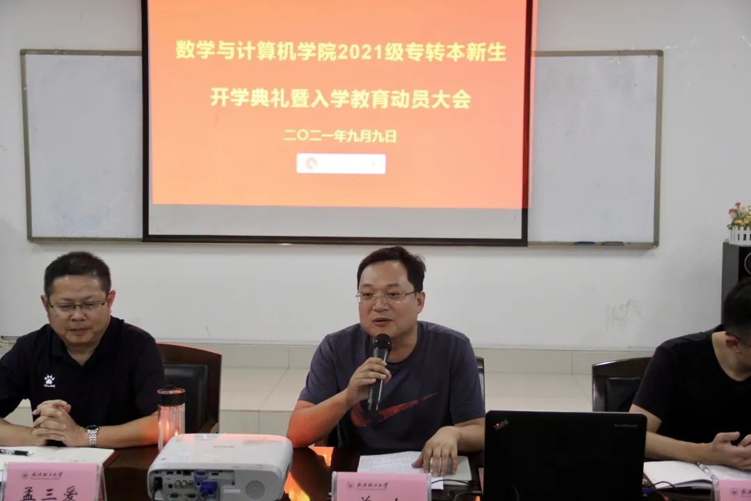 9月9日下午,在东七310会议室,新葡的京官网举行了2021年专转本新生开学典礼暨入学教育动员大会。学院党委书记孟三爱、副院长曾山、党委副书记谢慧荣、院长助理李皞、班主任蔡维纬、辅导员宋靖武老师,以及65名全体专转本新生参加了大会。会议由宋靖武主持。
