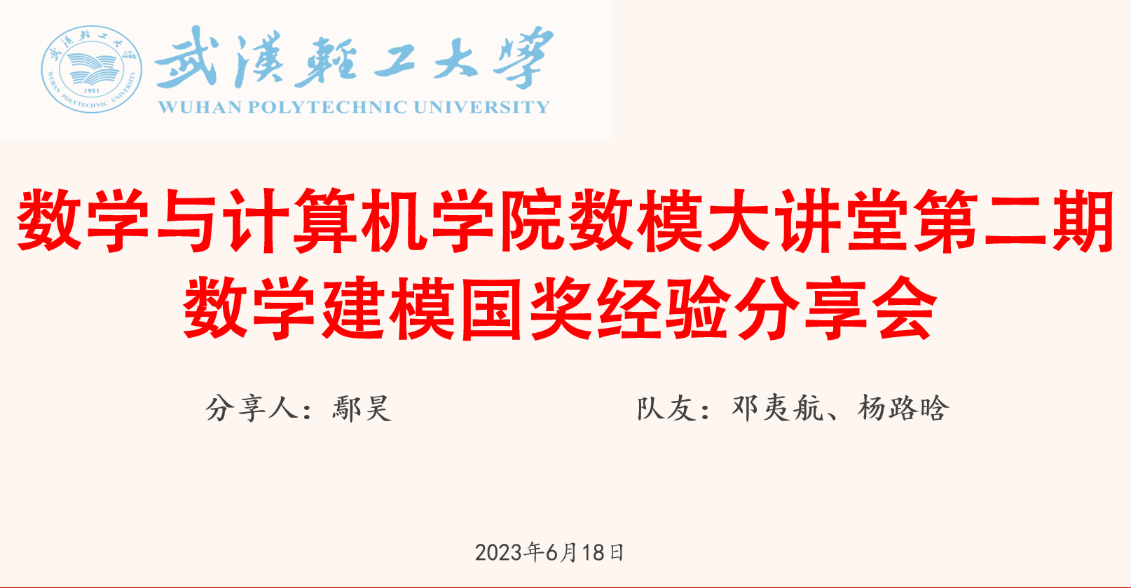 为进一步提升我校学生参加数学建模竞赛的实战能力,营造浓厚的数学建模竞赛氛围,6月18日上午,数学建模竞赛负责人在东8栋109组织开展了数学建模国奖经验分享会,本次会议邀请了2022年全国大学生数学建模竞赛国家一等奖获得者鄢昊同学,全校数学建模爱好者以及有意愿参加2023年数学建模比赛的同学们积极参加了此次分享会。