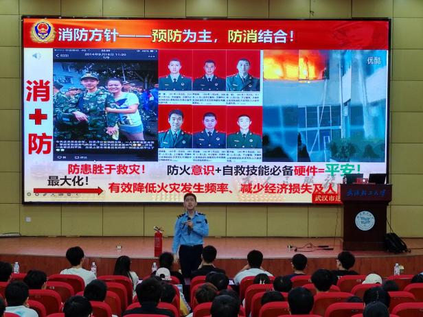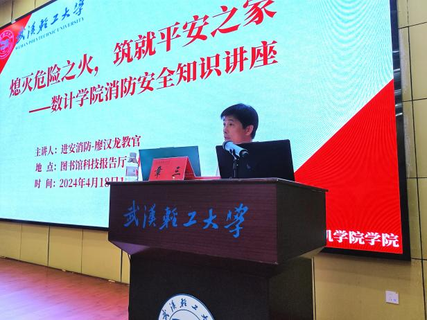 为进一步增强师生消防安全意识,提高火灾防范应急处置能力,营造安全的校园环境,4月18日晚,数计学院在图书馆科技报告厅三楼成功举办消防安全知识讲座。本次讲座邀请武汉市进安消防技术服务中心廖汉龙教官授课。学院党委副书记章三、辅导员李莎及大一、大二、大三学生寝室长等参加此次讲座。活动由章三主持。