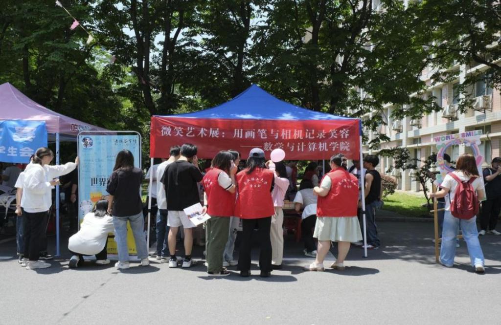 微笑是人类最美的语言,正值5月8日世界微笑日来临之际,为发挥心理育人的积极干预作用,使学生能在努力学习的同时,提升在校期间的生活幸福指数。5月8日,数计学院在金湖食堂门口开展主题为“微笑艺术展——用画笔和相机记录笑容”活动,引导学生传递微笑力量,同时也为5·25心理健康节的到来做好准备。