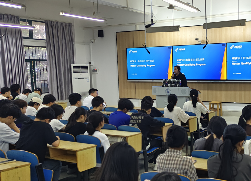 为进一步做好学生考研、升学及出国规划指导,深入推进中外合作办学项目实施,数计学院于5月22日晚在励志楼102室举办MQP硕士衔接项目宣讲会。AEMG教育集团招生部副部长宝力高部长担任主讲,数计学院副院长李雅琴、国际教育学院副院长陈德胜、MQP项目分部副主任魏雪参加宣讲活动,数计学院各年级学生共100余人参加本场讲座。