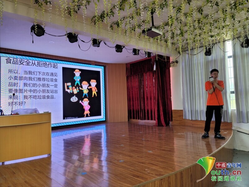 图为志愿者为小朋友们讲解食品安全问题(来自格林斯学校) 中国青年网通讯员 涂思清 摄