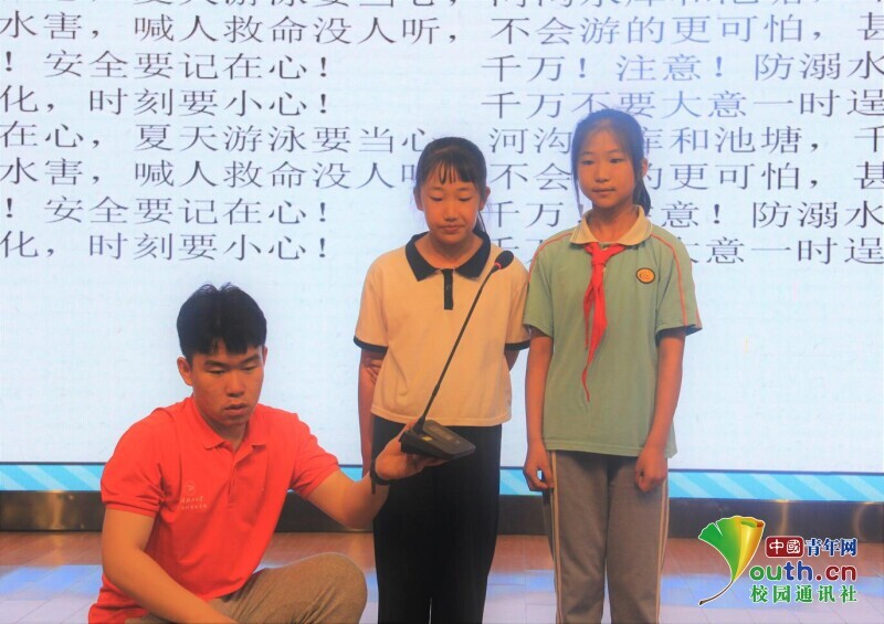 图为志愿者教唱防溺水宣传歌曲《孤“泳”者》(来自格林斯学校) 中国青年网通讯员 郭方皓 摄