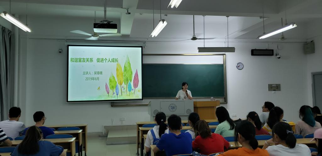 本网讯(通讯员邓浩))6月21日上午,新葡的京官网2018级辅导员吴春娥老师在基础楼103教室召开主题为“建设和谐室友关系 促进个人成长”讲座。2018级全体寝室长、生活委员参加了讲座。