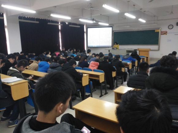 接着,吴老师介绍了2018年1月到6月的安排,包括寒假时间、毕业实习以及毕业答辩等事项的安排。她再三提醒同学们规划好时间,关注年级群的消息,分清轻重缓急,正确的时间做正确的事情!吴老师专门强调安全问题,其中包括寒假不准留校、离校保证室内水电安全、网络诈骗、社会传销等常见隐患;谨慎择业,上网查询应聘公司信息等等。