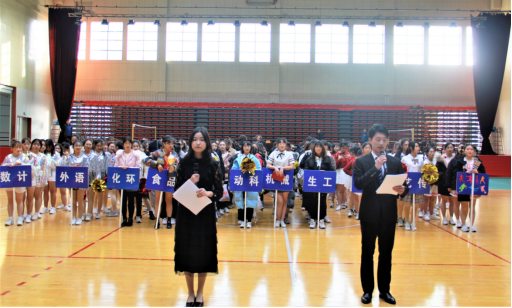 率先出场的是承办方数计学院的代表队。她们身穿银色舞服、露着自信的笑容、迈着动感的脚步,一上场就带给大家一股青春的气息。音乐响起,她们在场中跟随音乐节奏,时而跳跃舞动、时而变换队形,在音乐将要结束时,她们摆出了代表“数计”首字母的“SJ”队形,赢得了场上观众的阵阵掌声。随后各个学院代表队依次上场,她们活泼轻快的舞姿和灵活变幻的队形,带给现场观众一场视觉盛宴。