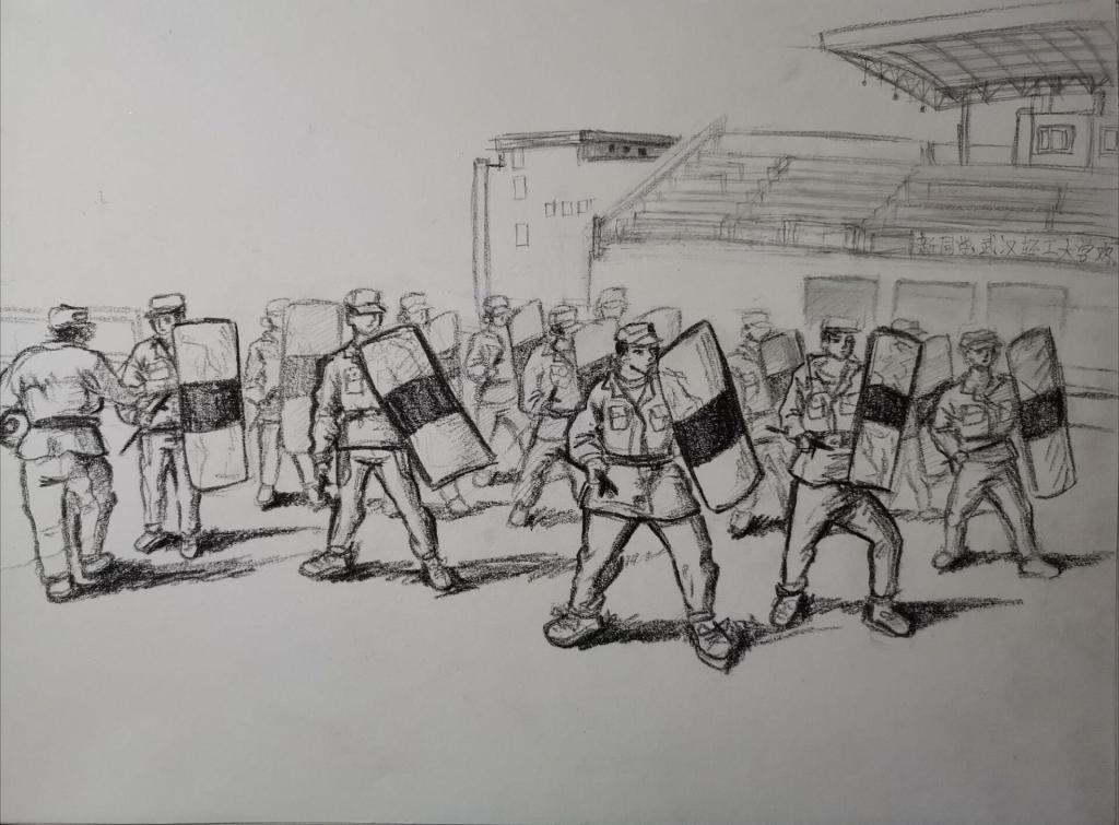 十几天下来,打得有模有样的军体拳、并肩作战半个月的“战友”、训练时严肃认真的教官、迎新晚会上的璀璨灯光……军训场景一一入画,军训结束后,她的画作达到十一幅。“有的地方还不尽如人意,但是每一幅画我都画得很认真。”姚雨桐说,“这也算是以另一种方式参与到军训中!”