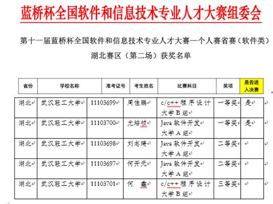 近日,第十一届“蓝桥杯”全国软件和信息技术专业人才大赛省赛成绩揭晓,新葡的京官网选派学生参加了C/C++程序设计、Java软件开发组别的比赛,共荣获2项一等奖,2项二等奖,1项三等奖。