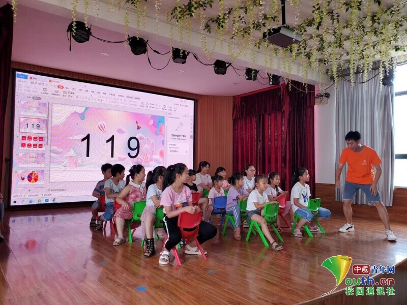 通过支教团队合作演出的情景剧,午晨旭将“安全”引入课堂。剧中,7名成员分别遇到的拐卖、溺水、交通、饮食、火灾等安全事故,让同学们认识到了身边存在的安全隐患。