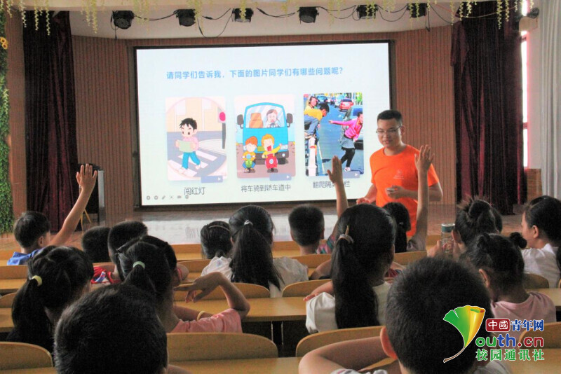 经过充分的准备,7月12日上午,团队成员午晨旭给信阳格林斯学校学生上了一堂生动的安全教育课。