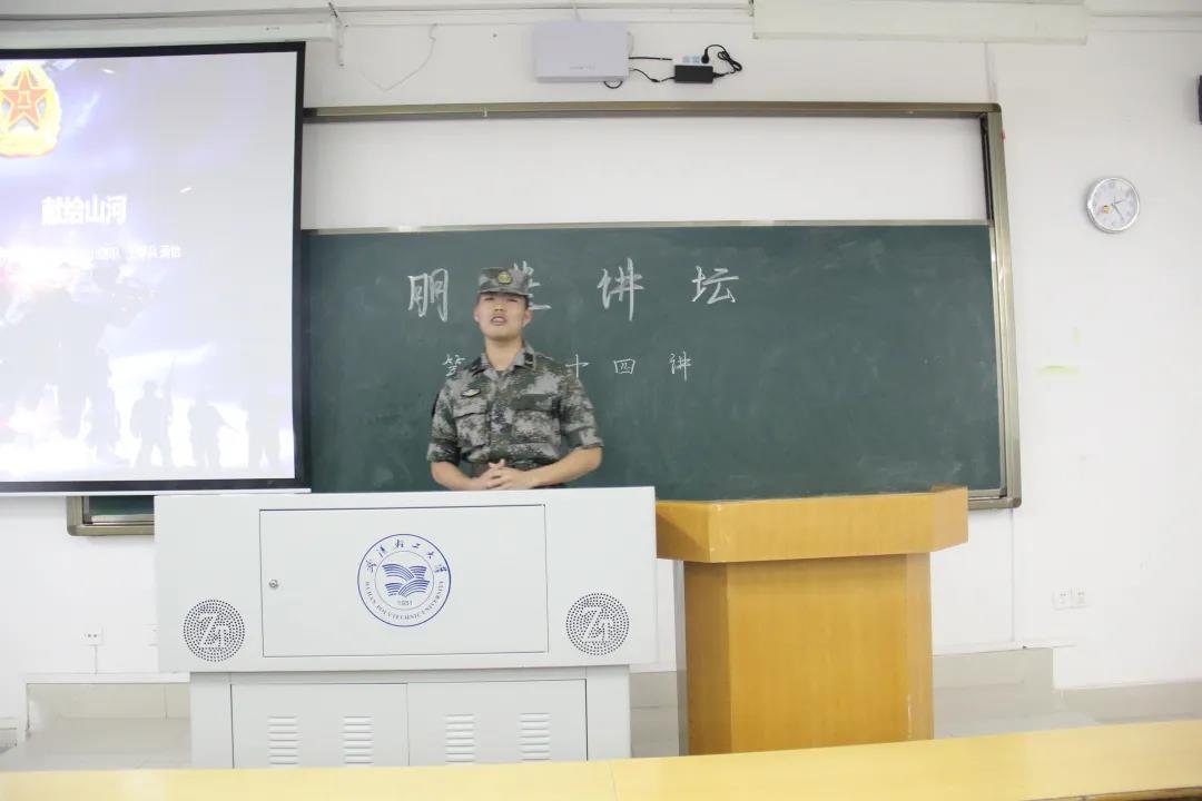 “军旅之星”蒲怡以幽默诙谐的方式从“你心中的部队”切入主题,而后从部队有什么、部队干什么、部队给了什么三个方面着重讲述了自己在部队成长蜕变的经历。他说:“都说当兵后悔两年,其实我在部队一点也不后悔,我时刻能感受到自己肉眼可见的成长,而现在,我会带着这份成长,在校园里继续奋斗。”