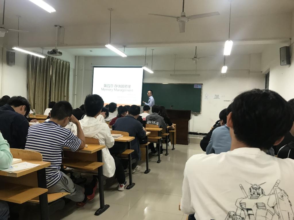 我系李嗥老师围绕级存储器管理等进行了教学展示。他首先在上课之前就为大家播放了课程相关的专题片,上课后通过视频短片引入本次课程需要讲解的内容。在讲述过程中,通过习近平今年两会中的讲话告诉在座的同学我国的科技实力从“仰视”到“平视”,勉励同学们为青春奋斗,努力学习,报效祖国。